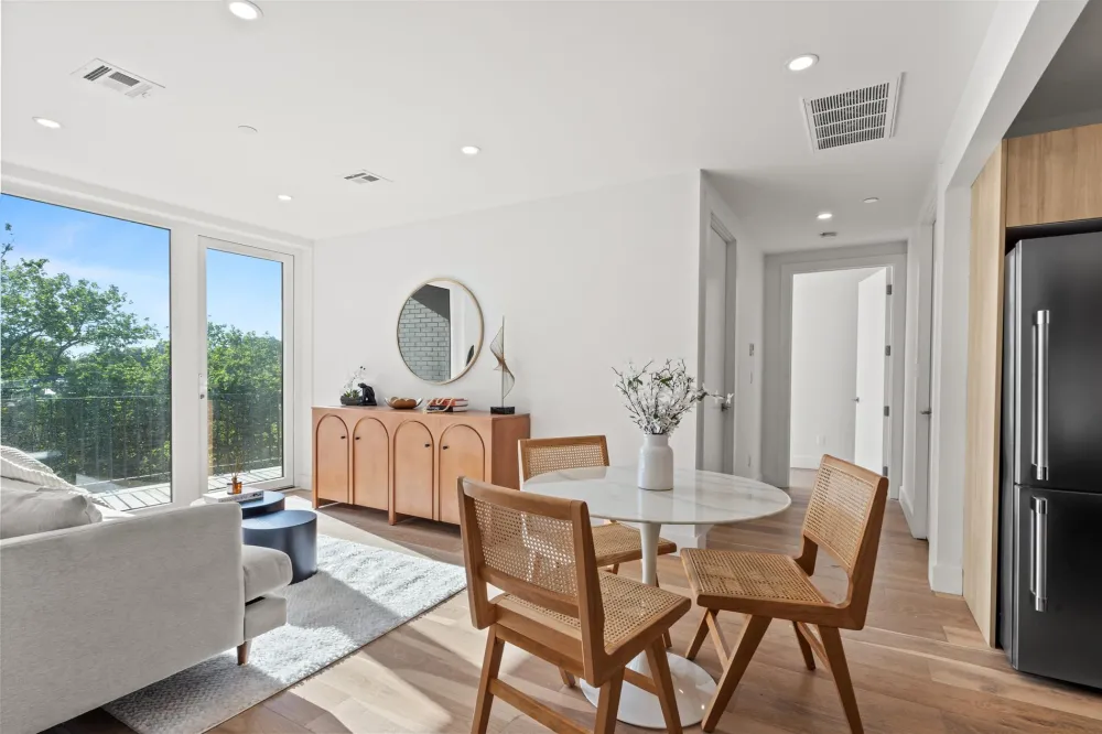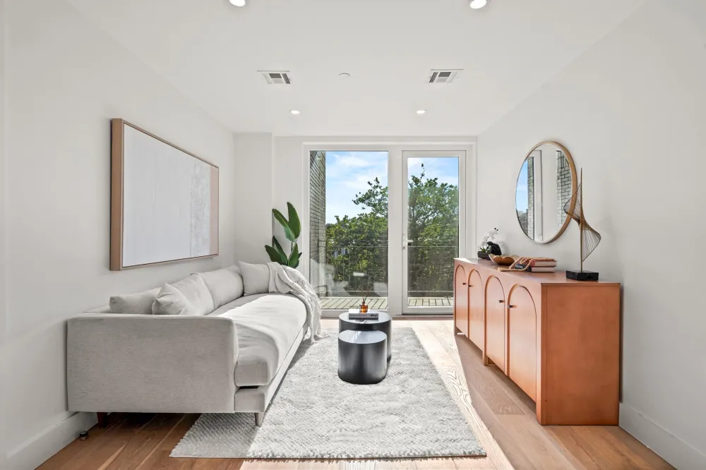1173 Rogers Avenue is a standout boutique condominium with a white brick facade and amenities that cater to a range of lifestyle preferences. They include a virtual doorman, secure package storage, a bicycle room, roof deck, and a sun-splashed, large gym with extensive cardio and weight-training equipment. The building also features a rare drive-in garage with dedicated parking spots that can be purchased based on availability.