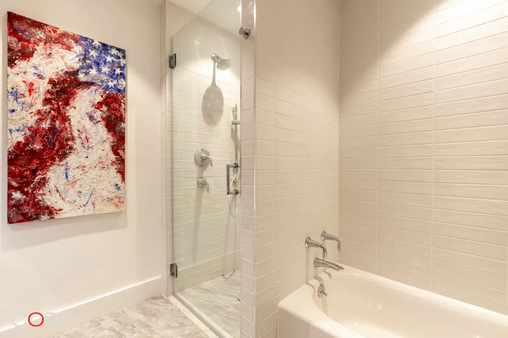 Retreat to the king-size primary suite, complete with a luxurious five-piece en-suite bathroom—double vanities, a glass-enclosed shower, and a deep soaking tub create a personal spa-like escape.