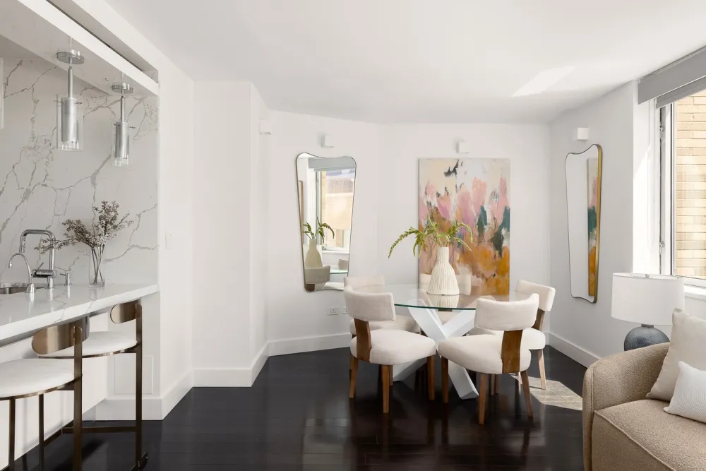 Wow! What an amazing opportunity to purchase a turnkey 1 bedroom home right in the epicenter of Lincoln Center! This completely gut renovated south facing one bedroom home spans 819 sf and features a flexible Living room /dining room layout, open Chef's kitchen, Vented Washer Dryer, custom closets, cabinetry and bathroom, and climate control by Nest. Working from home? the renovation also added Cat5 ethernet connections to both the living room and bedroom fro co-working households.