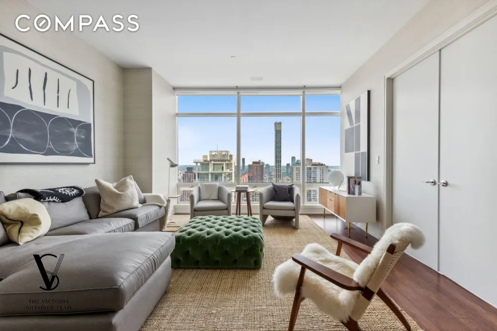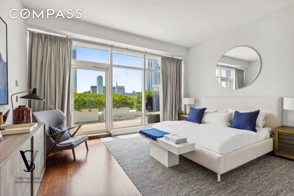 Offering 3,418 square feet of combined indoor and outdoor space, this residence balances scale, light, and luxury. Inside, soaring 11 foot ceilings and dramatic south and east exposures flood the home with natural light and stunning city views. Generously proportioned rooms feature ample walk in closets, an in unit washer and dryer, and a modern eat in kitchen equipped with high end appliances and sleek finishes.