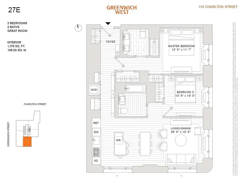 Designed by Parisian architect Sebastien Segers, Greenwich West at 110 Charlton Street is a full service condominium offering an abundance of amenities including; 24 doorman, landscaped and furnished roof terrace, state of the art fitness center, grand welcoming lobby and residents lounge, children’s playroom, bike storage, cold storage, private storage options and a live-in resident manager.