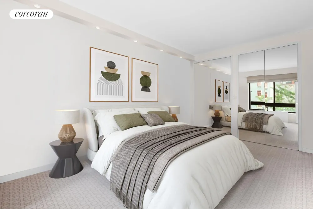 Located on the 5th floor of a full-service building, this thoughtfully designed home features an expansive layout with generous living and dining areas-perfect for both everyday living and entertaining. Highlights include oversized windows, hardwood floors, an in-unit washer and dryer, and peaceful courtyard views. The primary bedroom offers a quiet retreat with ample closet space and an en-suite bath.
