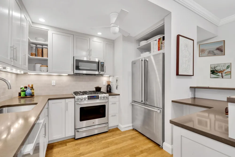 Bathed in natural light, this split-layout corner two-bedroom, two-bath residence is perched on the northeast corner of The Endicott, a full-service co-op in the heart of the Upper West Side.