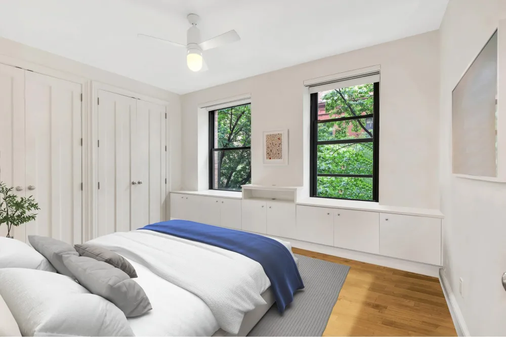 Additional features include wide-plank oak hardwood floors, CityQuiet windows, and abundant storage fitted with California Closet systems. A conveniently located laundry room is just down the hall from the apartment.