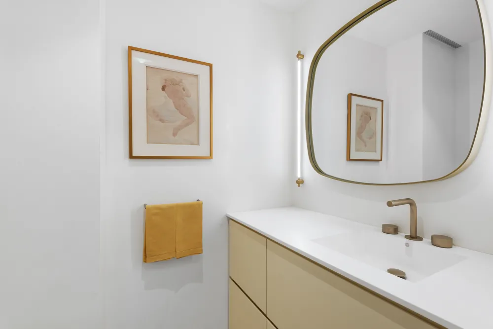 The tranquil bedroom includes two generous closet areas-one custom-made by McCormick and the other designed by California Closets-each with fully finished interiors including back walls. A built-in desk provides a quiet and refined workspace. The en-suite bath features a custom vanity and a large walk-in shower, delivering a spa-like experience at home.