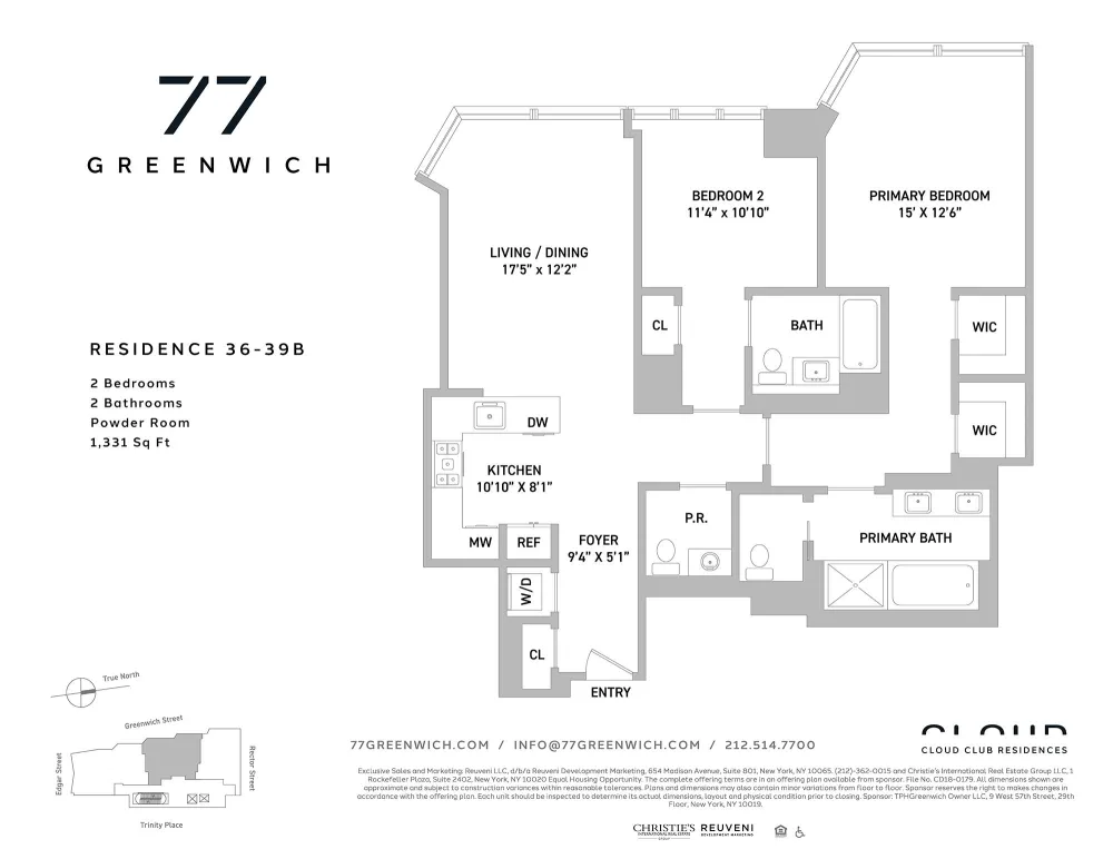 Exclusive Sales and Marketing: Reuveni LLC, d/b/a Reuveni Development Marketing, 654 Madison Avenue, Suite 801, New York, NY 10065 and Christie’s International Real Estate Group LLC, 1 Rockefeller Plaza, Suite 2402, New York, NY 10020 Equal Housing Opportunity. The complete offering terms are in an offering plan available from sponsor. File No. CD18-0179. All dimensions shown are approximate and subject to construction variances within reasonable tolerances. Plans and dimensions may also contain minor variations from floor to floor. Sponsor reserves the right to makes changes in accordance with the offering plan. Each unit should be inspected to determine its actual dimensions, layout and physical condition prior to closing. Sponsor: TPHGreenwich Owner LLC, 9 West 57th Street, 29th Floor, New York, NY 10019.