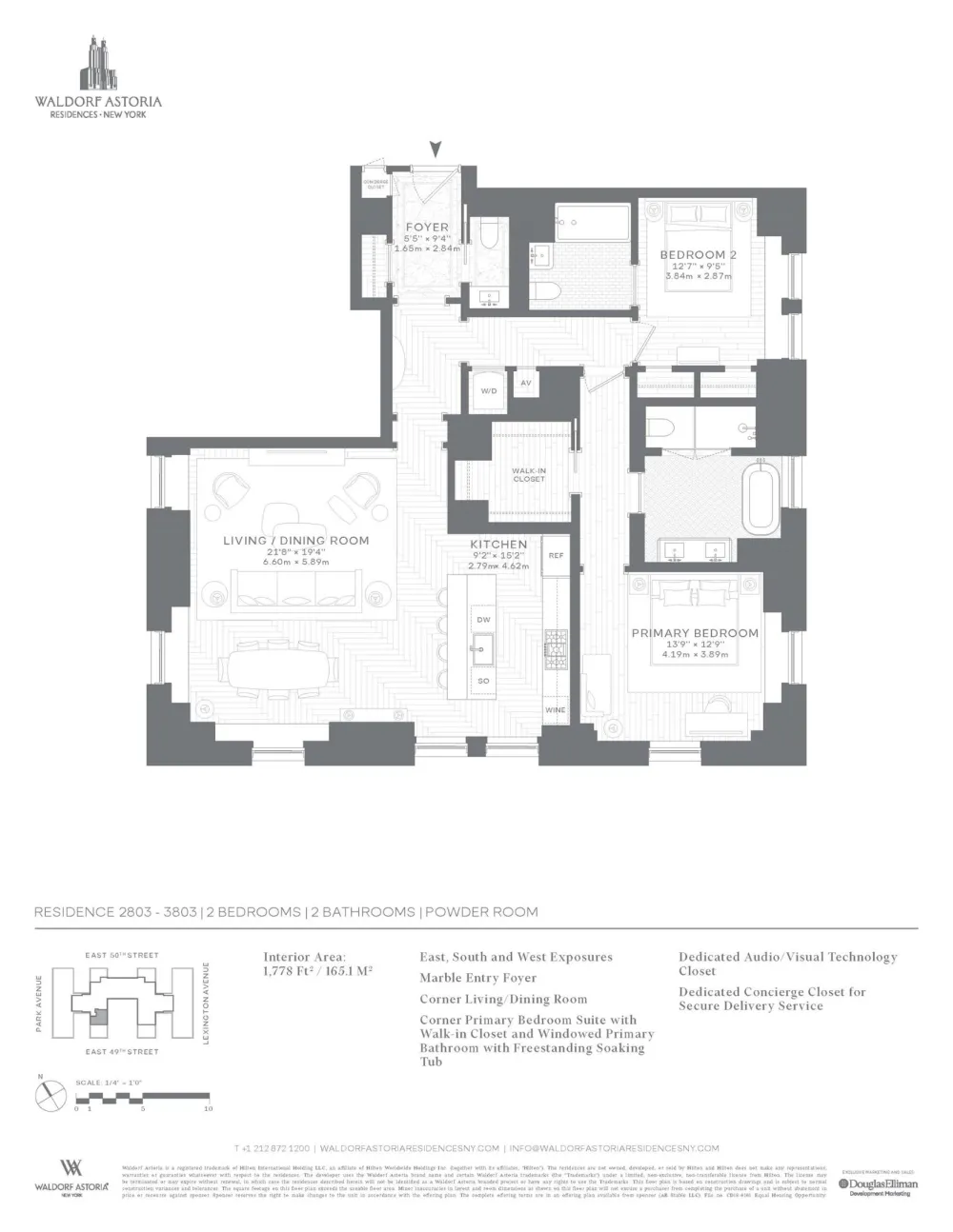 Own a piece of the legacy at Waldorf Astoria Residences New York. Residence 2803 is a two-bed, two-and-a-half-bath with triple exposure.