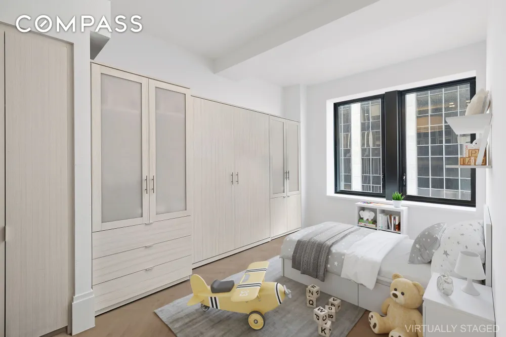 Retreat to the tranquil master suite, featuring a spacious layout with a separate deep soaking tub and glass-enclosed shower in the luxurious en-suite bathroom. Additional highlights include private storage and a washer/dryer. California Walk in closet in primary bedroom. Enjoy exclusive access to a robust amenities package designed by visionary Dutch architect Piet Boon, including a rooftop terrace, training studio, resident lounge, and kid's playroom. Embrace the opportunity to own a piece of Manhattan's iconic skyline and make this exquisite residence your urban haven.
