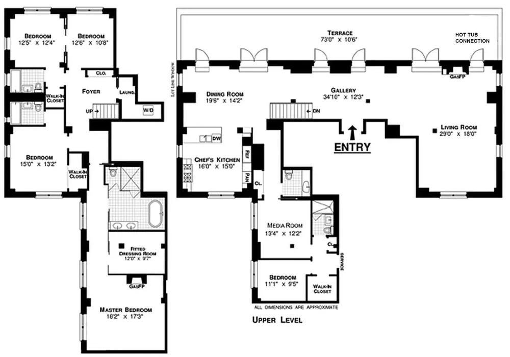 Welcome to a truly exceptional residence at The Olcott, one of the Upper West Side’s most distinguished full-service pre-war condominiums. Just moments from Central Park, this meticulously crafted 4,176 square foot duplex offers the rare combination of expansive interior space, luxurious finishes, a nearly 800 SF private terrace, and the privacy and functionality of a townhouse — all within the comfort and security of a white-glove condominium.