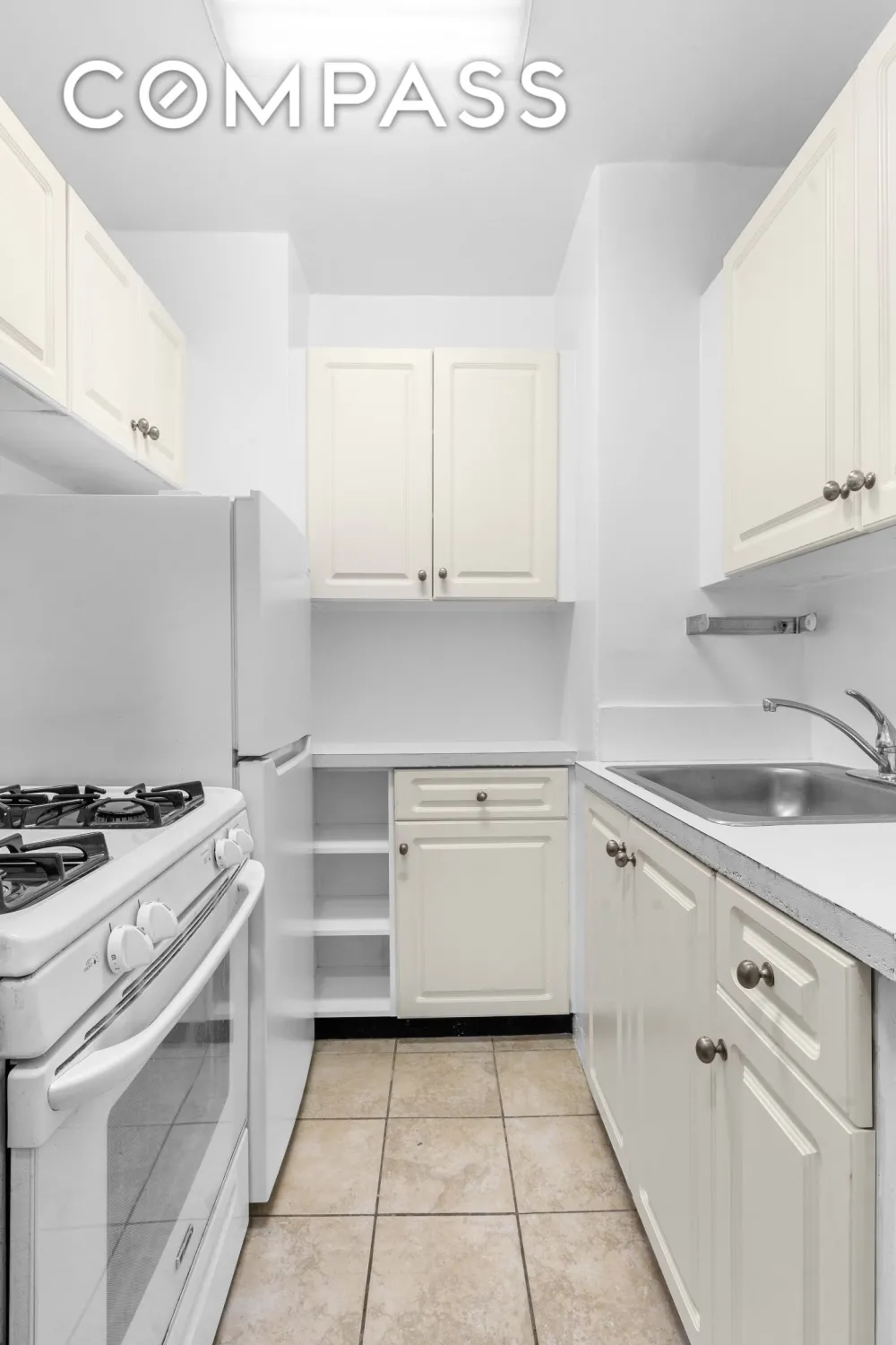 Welcome to Residence 3Z at 101 West 12th Street — a generously sized alcove studio offering a smartly designed living space. This bright, corner unit features windows facing north and west, bathing the home in natural light throughout the day. The expansive living area is large enough for distinct living, dining, and sleeping zones, and is complemented by charming parquet wood floors and a flexible layout. The entry foyer offers additional space, while the separate kitchen includes ample cabinet storage and full-size appliances. The bathroom is classic with tasteful tilework and a pedestal sink.