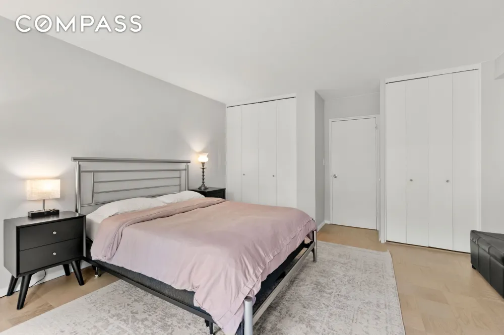 The primary bedroom features two custom-built closets and ample space for a king-size bed and additional furnishings, while the second bedroom offers flexible use—ideal as a guest room, home office, or creative space. The home has FIVE extra large closets for all your storage needs!
