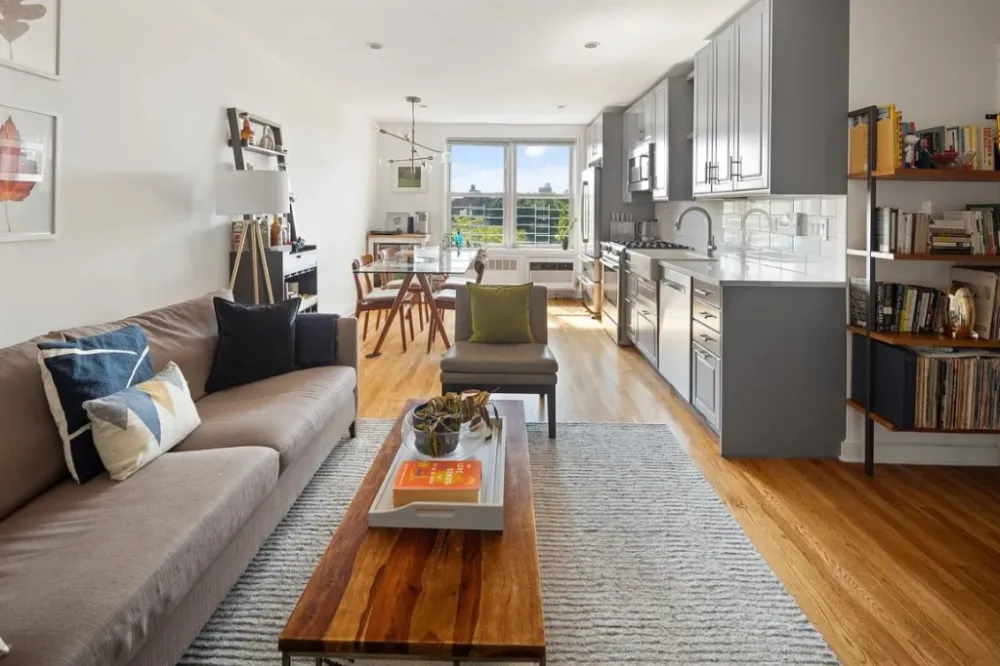 Worth the wait! 651 Vanderbilt Street #6W is a beautifully renovated two bedroom, one bath co-op in one of Windsor Terrace's most sought-after buildings. On a high floor with open treetop views, this luxurious home is flooded with light. Everything about this home is just right - there's storage where you need it, and open space where you want it. Two extra large closets hide away your coats and gear, leaving the kitchen/living/dining area feeling open and elegant. The sunny kitchen has full sized stainless appliances, quartz countertops and a classic, tailored style.