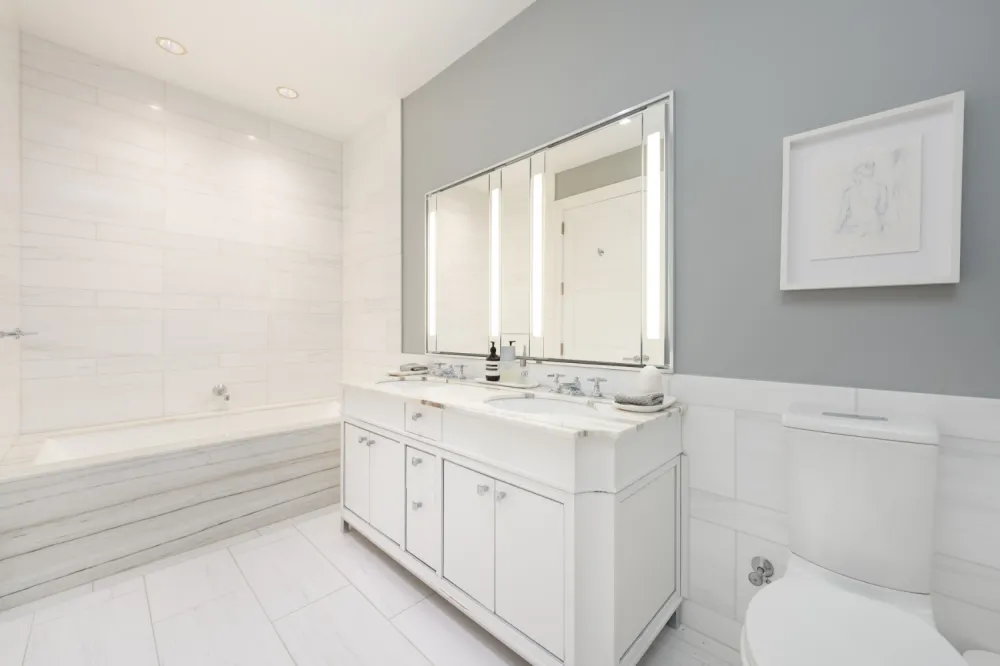 - Double vanity designed by architect Robert A.M. Stern