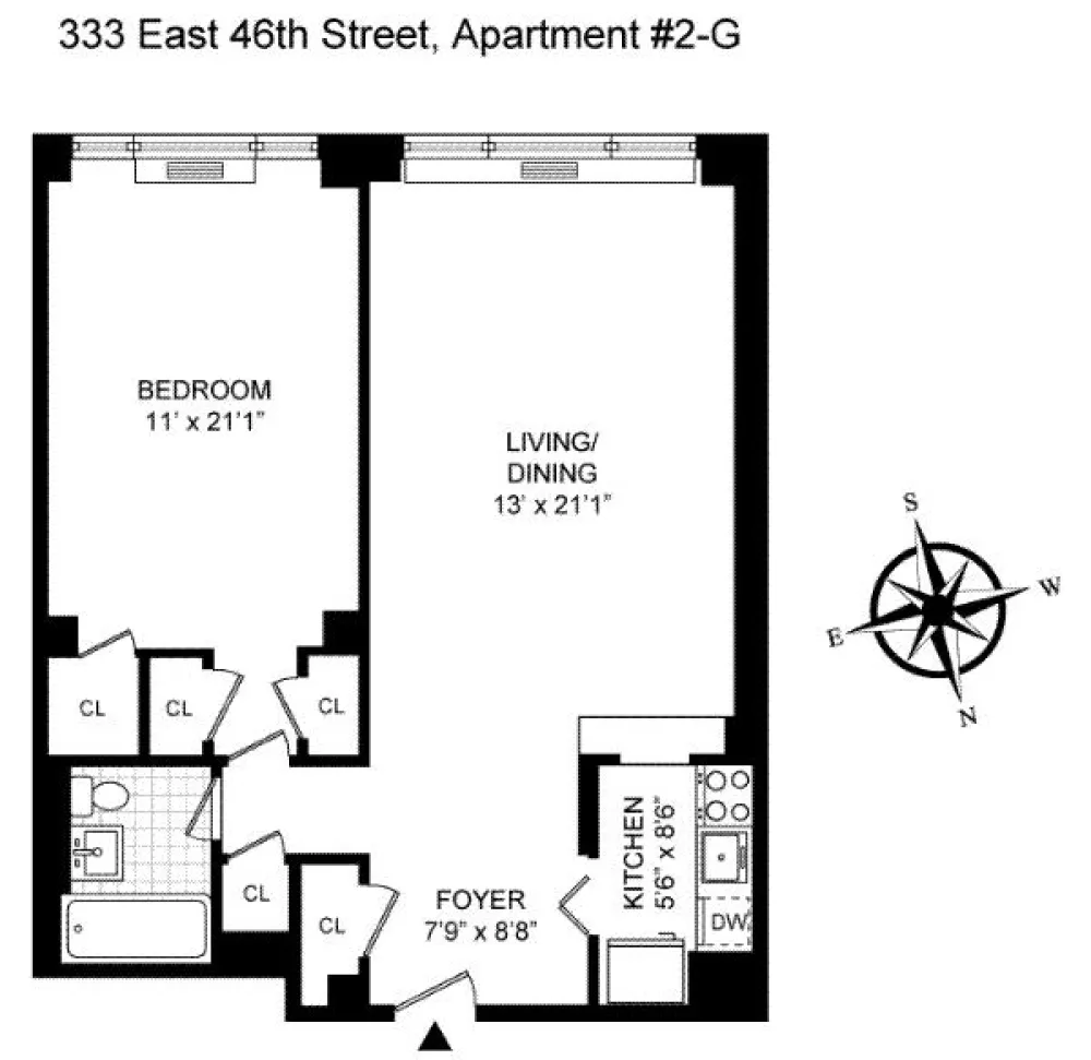 Bright & Spacious 1-Bedroom in Prime Midtown East - 333 East 46th Street, Unit 2G
