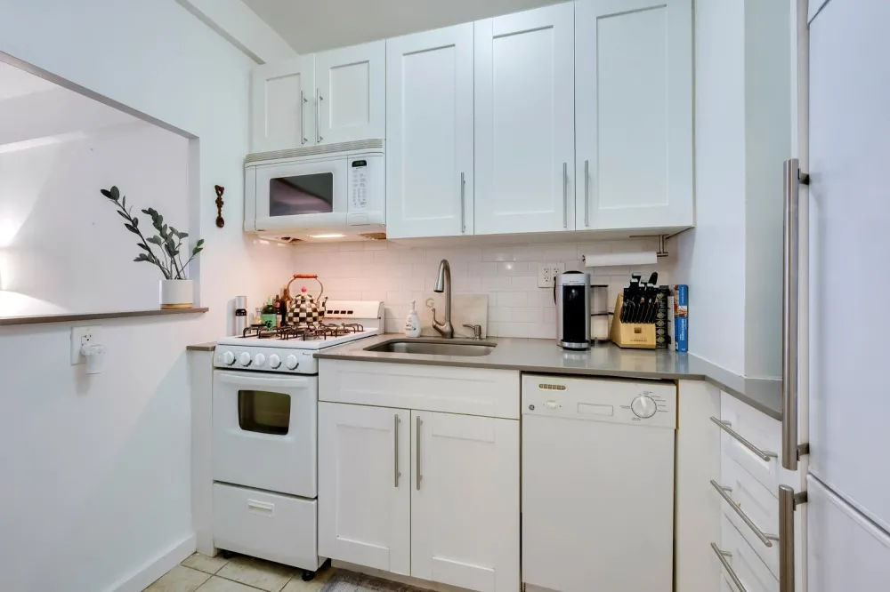 Updated Kitchen & Bath: The kitchen has been thoughtfully renovated with new appliances including dishwasher, countertops, and cabinets. The bathroom has also been updated for a clean, modern look.
