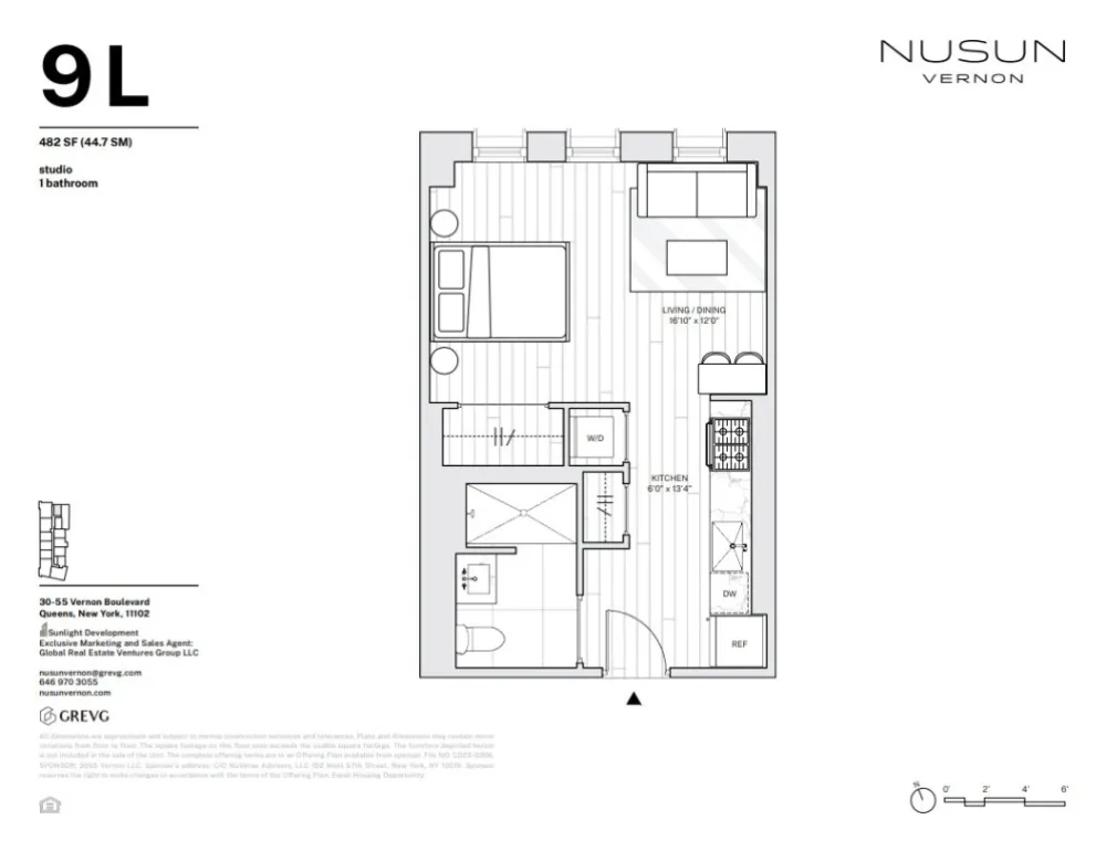 The residences at NuSun Vernon offer spacious and efficient layout with plenty of light, and generous closet space. Custom kitchens and baths integrate seamless technology with modern elegance. The Kitchen features Bosch appliances, wood cabinetries, and quartzite countertops which makes it the perfect blend of aesthetics and function. The residential bathroom features Kohler fixtures and a wood vanity, as well as a tall built-in medicine cabinet for extra storage. Conveniently nestled along a serene stretch of the East River between the bustle of Astoria and Long Island City, NuSun Vernon boasts an exceptional location, providing residents with plenty of natural light, green spaces, peaceful water views, and captivating skyline scenes. Nearby amenities include bike paths along Vernon Boulevard and easy access to cultural attractions such as Socrates Sculpture Park, Noguchi Museum, and the Museum of the Moving Image. NuSun Vernon boasts more than 9,000 square feet of luxurious indoor and outdoor amenities on three floors. The 2nd floor features a state-of-the-art gym, residents' lounge, coworking space, and common terraces with barbecue areas and seating. The rooftop terrace offers sprawling city views as well as shared dining and lounge spaces. Other amenities include on-site garage, bike storage, and storage facilities for added convenience and comfort. The 2nd floor gym boasts a wide variety of fitness options for residents, including a spacious cardio and weight training area with abundant natural light, as well as a yoga and stretching area. Images are artist renderings. Tax and Common Charge estimates are based upon pre-completion assessments of the property. The complete terms are in an offering plan available from the Sponsor (File No: CD23-0306).