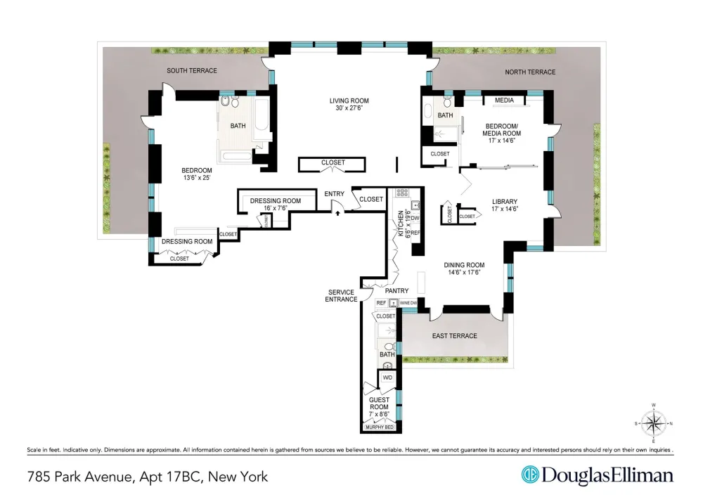 With an ideal and highly desirable Upper East Side location, 785 Park Avenue is a prewar cooperative with impeccable service. Amenities include a state-of-the-art private fitness center, individual storage bins, and a beautifully landscaped roof garden. Offered in impeccable condition, this gorgeous and architecturally significant apartment is an exceptionally stylish oasis.