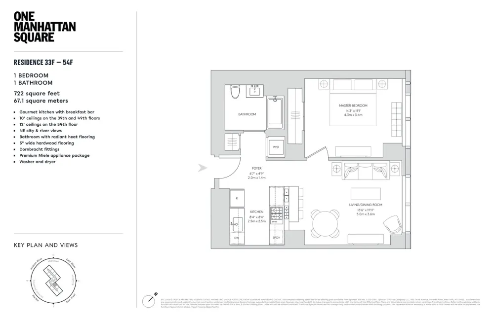ONE MANHATTAN SQUARE OFFERS ONE OF THE LAST 20-YEAR TAX ABATEMENTS AVAILABLE IN NEW YORK CITY Residence 45F is a 722 square foot one bedroom, one bathroom with an open gourmet kitchen and breakfast bar. This spacious residence faces North East with East River and Williamsburg Bridge views. Warm, modern... See more