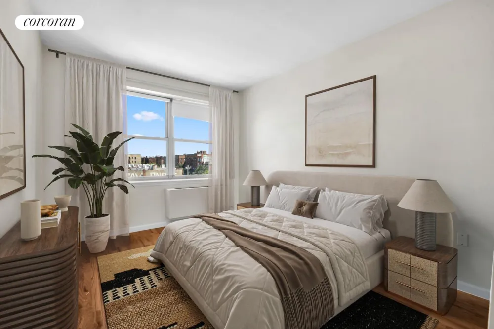 Welcome to Residence 4H at The Phoenix - an exceptionally scaled two-bedroom, two-bathroom home offering nearly 1,000 square feet of sun-drenched living space, efficient HVAC in every room, and one of the ten largest condo layouts in all of Sunnyside.