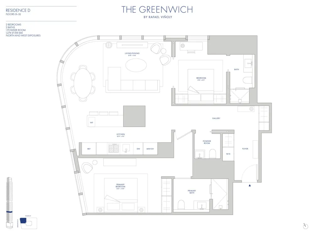 Welcome to Residence 31D at The Greenwich by Rafael Vinoly, a three-bedroom, three-and-a-half-bathroom home with northern and western exposures. At 1,932 square feet, this home offers thoughtfully designed living spaces, with interior finishes by esteemed design firm, MAWD.