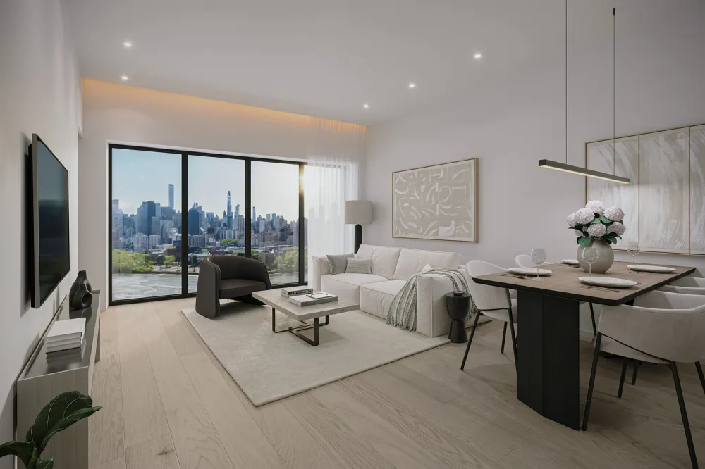 Additional amenities include a co-working lounge, a pet wash station, a part-time attended lobby, on-site parking, and storage for purchase. Transportation is effortless with a private resident shuttle to nearby subway lines and the Astoria Ferry landing located just over 500 feet away, providing a scenic and direct commute to Manhattan.