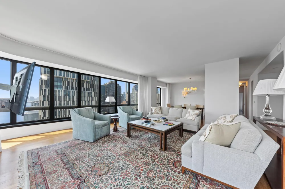 Rarely available high floor corner line 3 Bed 3.5 Bathrooms with sunny south and east exposures. Panoramic East River and city views from every floor to ceiling window in every room. High ceilings. Nicely updated throughout with spacious entertaining and dining with direct river views. Updated kitchen with custom cabinets, marble countertops and stainless-steel appliances. Three large bedrooms, two with access to a private balcony. The primary bedroom is very large with a sitting area that could be another bedroom. The building is called "The Promenade" and it is a luxurious full-service CONDO with 24 hour concierge, garage, doormen, porters, handymen, live-in super, playroom, roof garden, outdoor jogging track, roof top business/conference room, storage rooms, maid and dry cleaning services, bicycle room and a very big party room on the top floor (with its stunning river views and its own kitchen & bathroom) that is available for residents" private parties. Common charges include your use of the fully renovated health club and gym, top floor heated swimming pool, saunas, steam rooms, massage rooms, fitness & meditation classes. Steps away from John Jay Park. Current assessment of $802 per month.