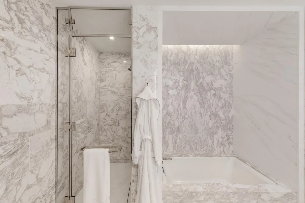 The grand amenities spaces are personalized with handmade artwork, distinctive marbles, natural stones, and dramatic light fixtures that come together to create an ethereal, intimate feel. Residents arrive to The Centrale through a sheltered porte-cochere or the private residential lobby, which are both attended to 24 hours a day. The formal Great Room, Private Dining Room with Catering Kitchen, the Club Room, and an all-season Club Terrace are perfect for entertaining in any style. A state-of-the-art fitness center overlooks a 75" lap pool, while the yoga room offers a serene respite.