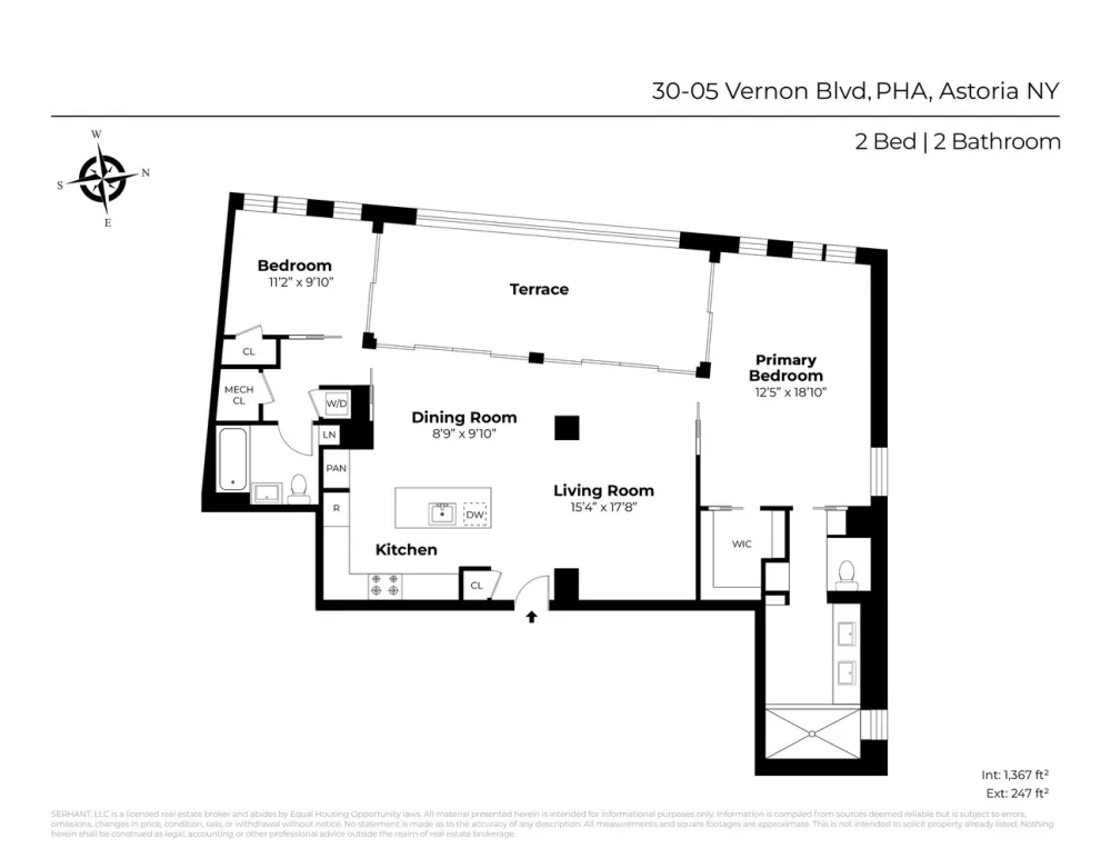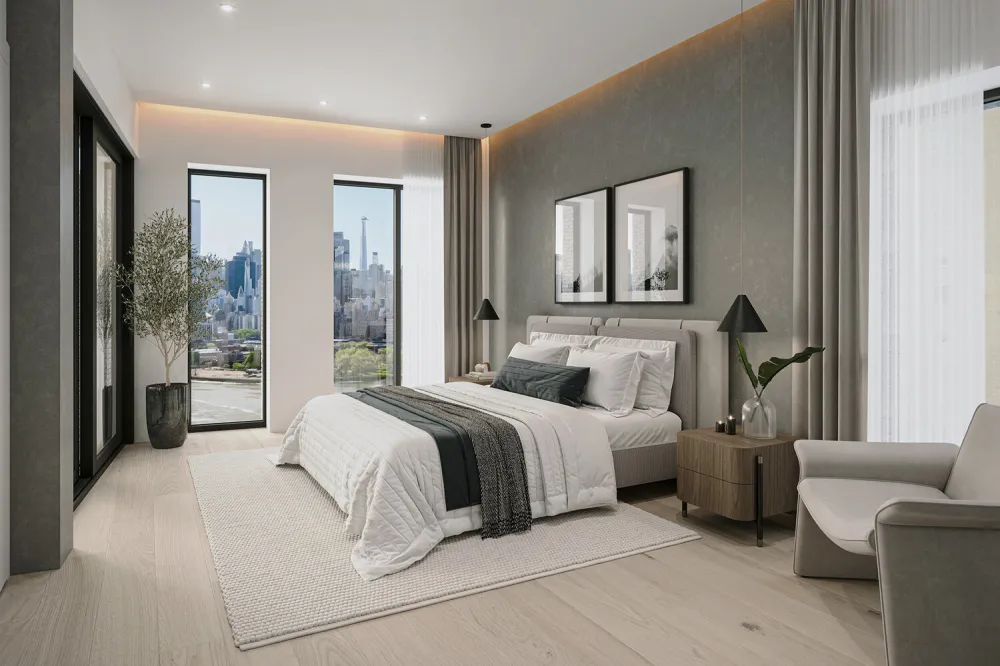 Introducing Penthouse A at The Marina Astoria-a meticulously crafted two-bedroom, two-bathroom home offering 1,367 square feet of refined interiors and cinematic, west-facing views of the Manhattan skyline and East River. Framed by floor-to-ceiling triple-pane windows, the space opens onto a rare 247-square-foot private terrace, perfect for morning coffee. The home is bathed in natural light and designed for tranquil city living just moments from Midtown.