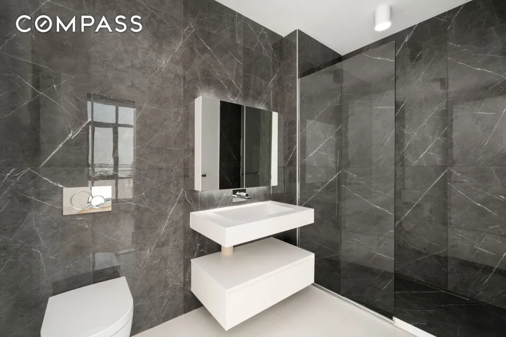 Unit 4E3 is a spacious one-bedroom, two-bathroom dream with floor-to-ceiling windows, a sleek Bulthaup kitchen with Miele appliances, and spa-inspired Italian stone bathrooms. European White Oak floors, oversized doors, and exposed ceilings complete the perfect blend of style and sophistication. Central HVAC and an in-unit washer/dryer add effortless convenience.