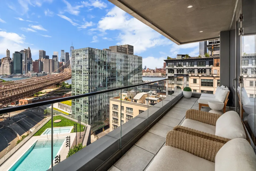 Offering expansive views of the Brooklyn Bridge, Residence 15A is DUMBO living at its best. This three bed, three-and-a-half bath home features a split 198 SF river-facing terrace for diverse use and elegant living.
