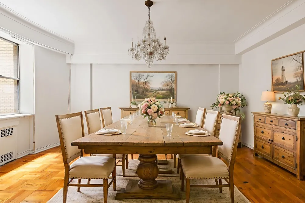 The formal dining room sits just off the living room, creating an elegant flow for entertaining . The generously sized primary bedroom also faces Central Park and features an en-suite bathroom and ample closet space. The second bedroom enjoys quiet eastern exposures and is served by a full hall bath.