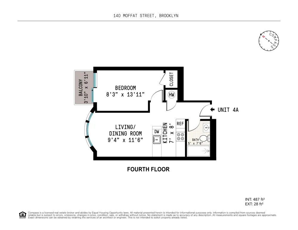 Welcome to Residence 4F – A Sunlit One-Bedroom, One Bathroom Floor-Through Home with private balcony.