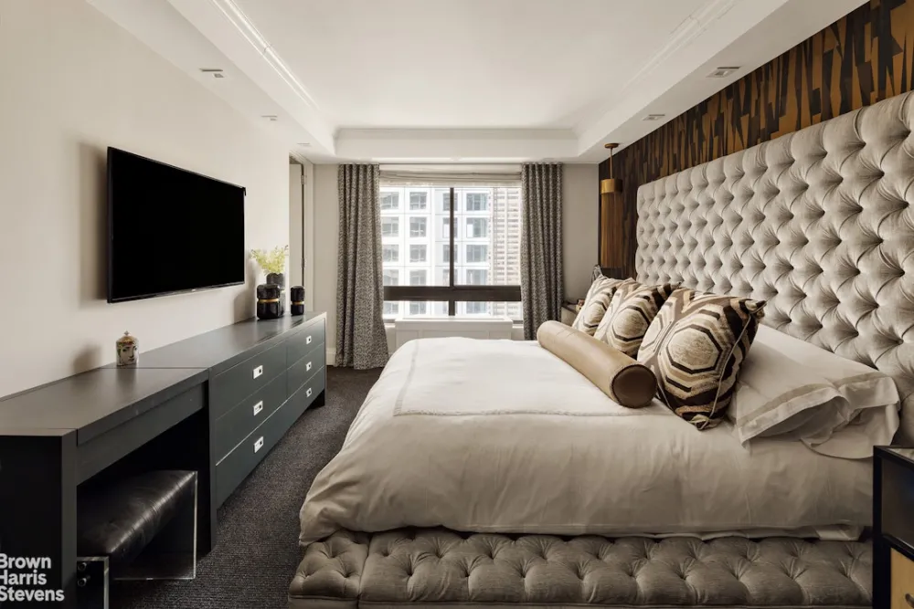 Completely renovated, this high floor one bedroom, one bathroom plus powder room home is superbly designed. The detailed interior embraces a mix of materials to create understated luxury. The geometric marble floors, tile fireplace accent wall, custom crown moldings, and textured wallpapers create visual interest to the residence. With two walls of windows to maximize the city views and natural light, there is a sense of airiness to the open floor plan. The top-of-the line kitchen seamlessly extends the living/dining area with its custom wood cabinets in the neutral color pallet and contrasting stone countertops/backsplashes. The primary bedroom functions as a luxurious hotel suite with its spa-like bathroom and wall of custom closets. For additional luxury, the powder room is a perfectly detailed jewel; and for convenience, there is a washer/dryer. Totally move-in ready, rarely does an apartment of this quality become available.