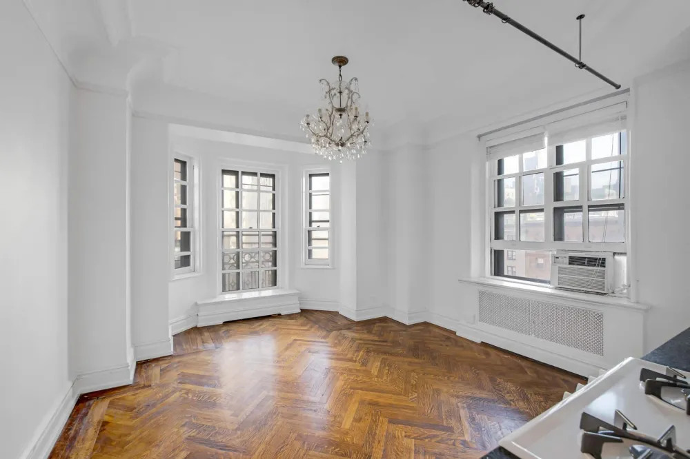 The apartment is a beautiful blend of prewar style and modern convenience. It is graced with 9 foot plus ceiling height complete with original prewar moldings, a hallmark of the prewar aesthetic, and lovely original walnut herring-bone wood floors.