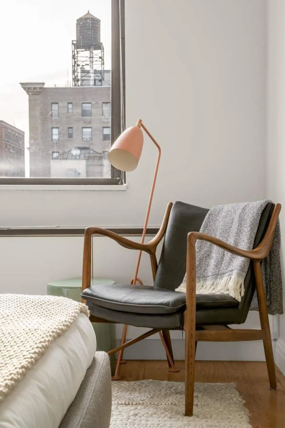 Flooded with afternoon light through oversized west-facing windows, the living room is a warm and inviting space with open views down Broadway. There’s room for both a full seating area and dining — perfect for quiet nights in or hosting friends. The renovated kitchen is sleek and functional, with Miele appliances, custom cabinetry, and stone countertops. The bedroom comfortably fits a king-size bed and feels like a true retreat, with a large walk-in closet and custom built-ins for added storage. The spa-like bath is designed for everyday luxury with a glass-enclosed shower and modern finishes.