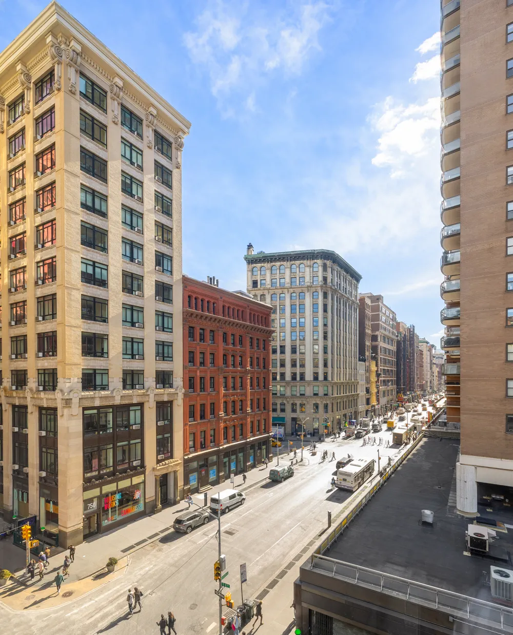 Beautifully combined apartments 606 and 607. As you step into this stunning Greenwich Village home, you are immediately greeted by an open floor plan and an expansive living space bathed in natural light. The seamless flow between the living, dining, and kitchen areas creates an airy and inviting atmosphere, perfect for both daily living and entertaining. South-facing windows, wide-plank hardwood floors, recessed lighting, and elegant finishes add to the homes sophisticated charm, while thoughtfully designed storage solutions enhance functionality. Every south-facing window offers an unobstructed view across East 8th Street and straight down Broadway, immersing you in the vibrant heart of this iconic New York City neighborhood.