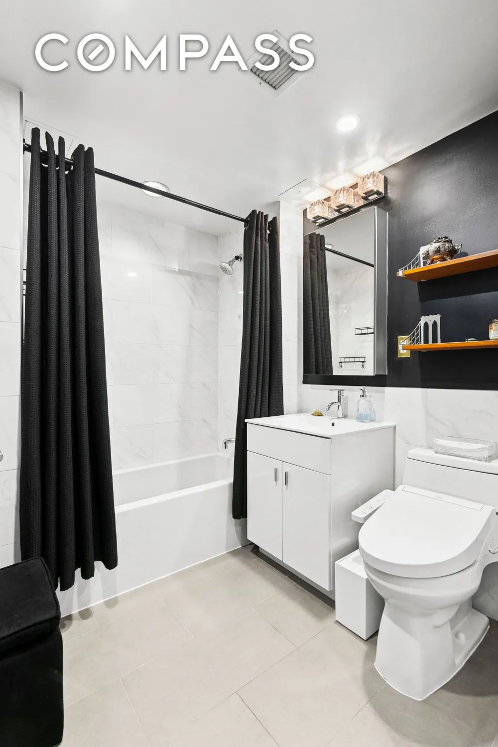 Enjoy the ambiance created by personal upgrades that feature, recessed lighting with dimmers throughout, a statement chandelier in the living space, and a Wi-Fi-enabled digital thermostat for smart climate control. The in-unit vented washer/dryer, central air and heat, and blackout shades on all windows add to the ease and quiet luxury of everyday life. The bedroom features a high-end ceiling fan with remote, while a large storage closet with extended shelving provides ample room for organization. Bathroom has Kohler soaking tub and sand natural glazed tile. As an end unit, you’ll appreciate the peace and privacy, along with brilliant natural southern light streaming through the apartment.