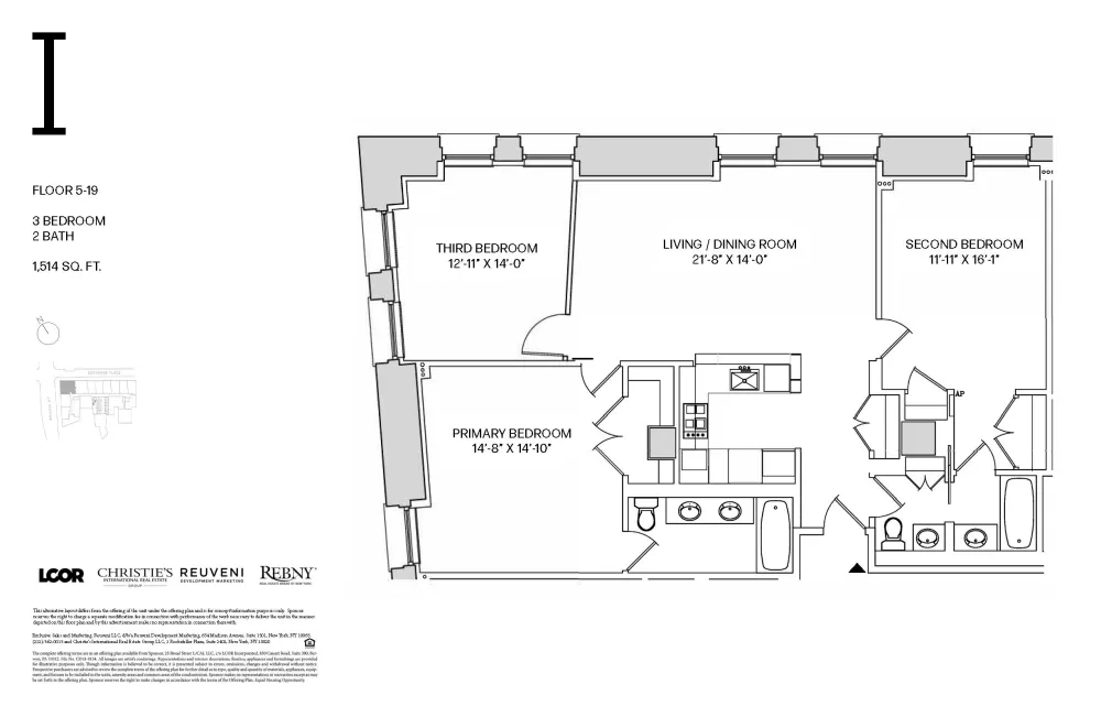This alternative layout differs from the offering of the unit under the offering plan and is for concept/information purposes only. Sponsor reserves the right to charge a separate modification fee in connection with performance of the work necessary to deliver the unit in the manner depicted on this floor plan and by this advertisement makes no representation in connection therewith.