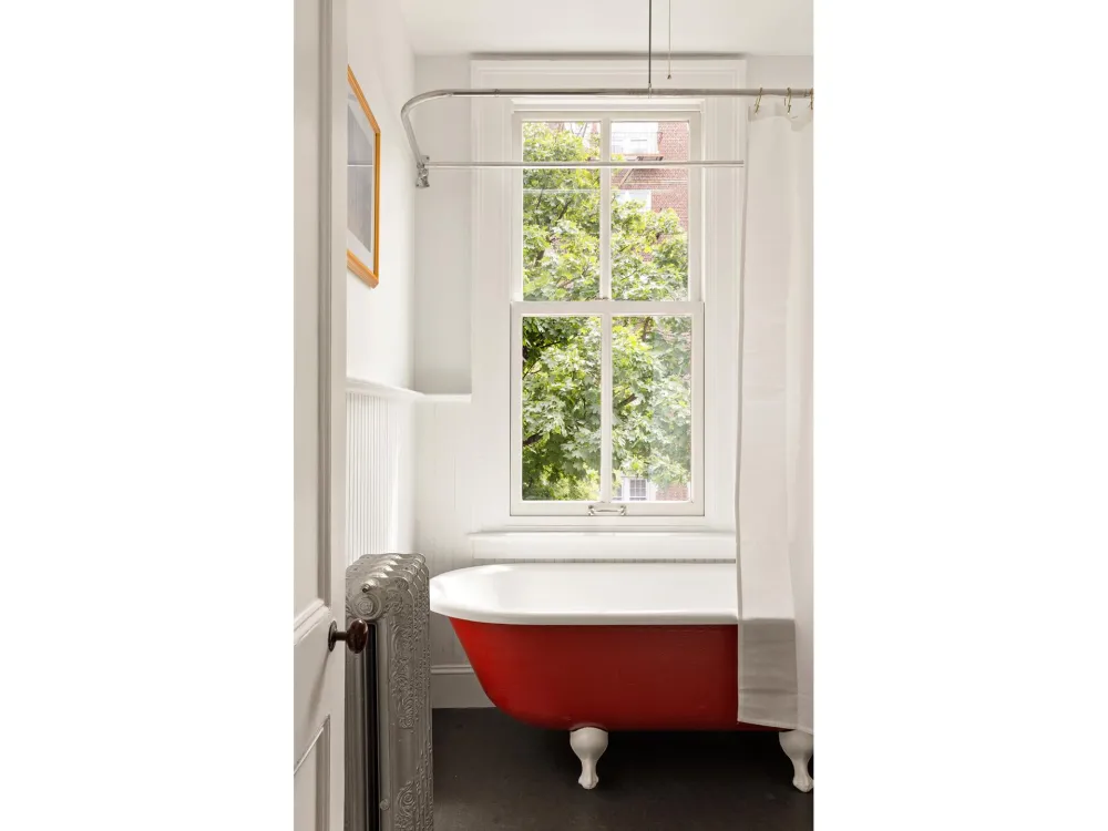 Upstairs, each bedroom offers built-in closets and excellent light. The second-floor front bedroom retains a fireplace that can be reopened, and plumbing in the primary allows easy addition of an ensuite if desired. The bathrooms feature classic clawfoot tubs and windows inviting natural light.
