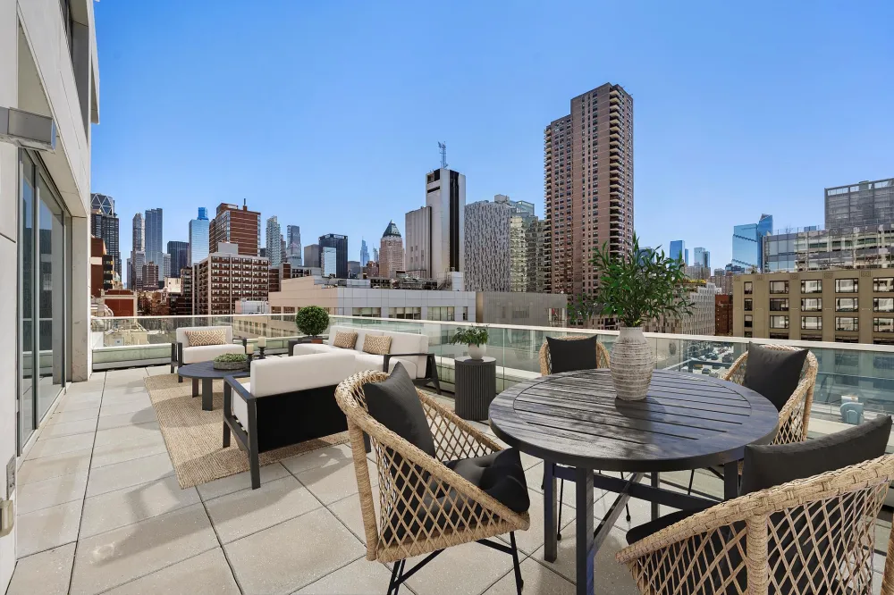 Designed by renowned architect Alvaro Siza with interiors by Gabellini Sheppard, Duplex 9A is a 2,479 SF three bedroom three-and-a-half-bathroom duplex residence featuring an expansive private 864 SF terrace with exclusive direct elevator-to-residence access plus dual service entries on both the living and bedroom floors.
