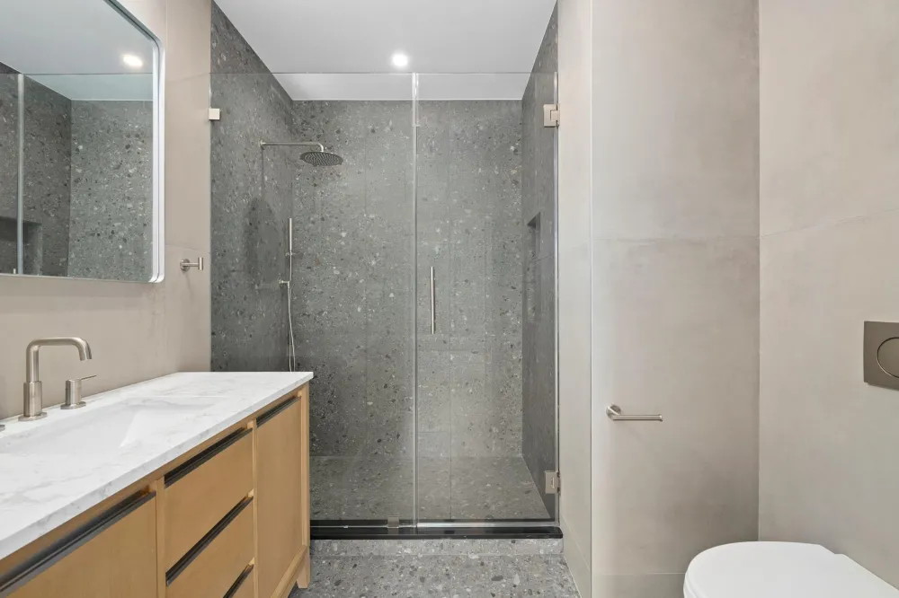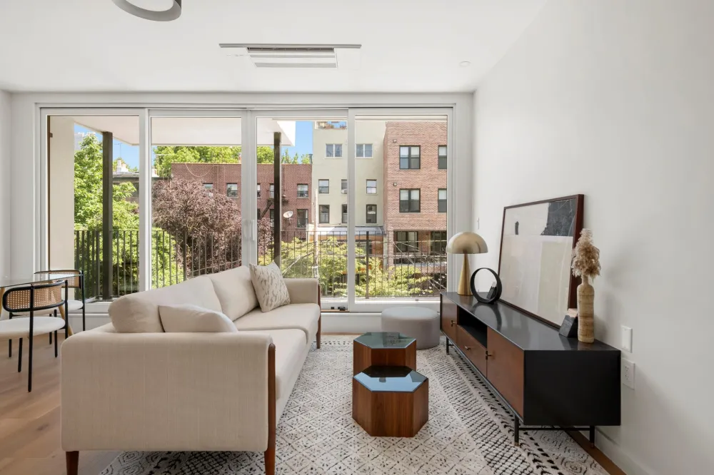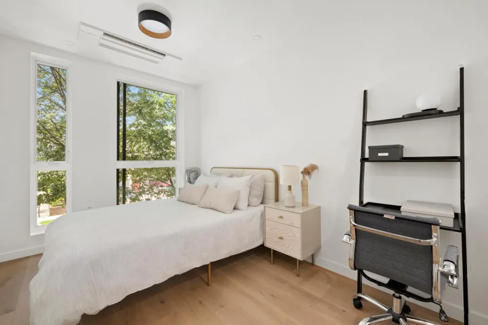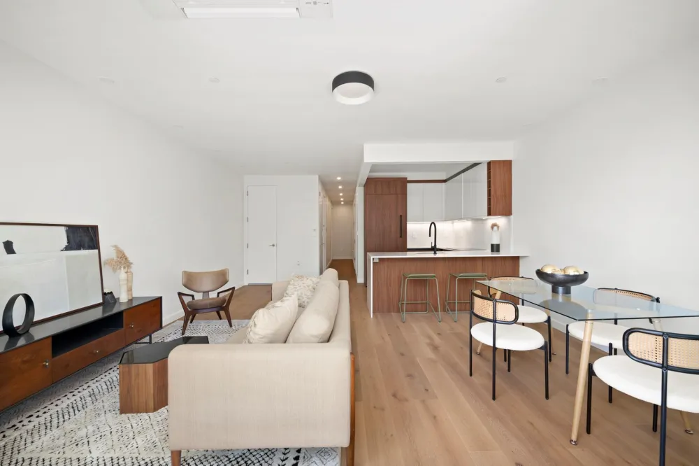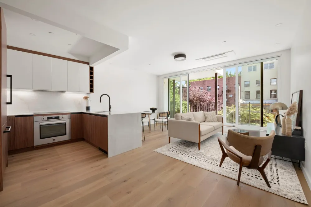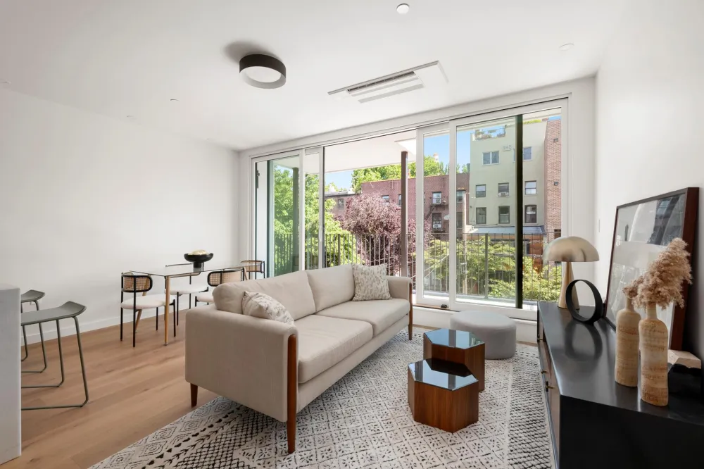 Experience modern elegance in Residence Two at 643 Baltic Street, a thoughtfully designed floor-through home in the heart of Park Slope. Spanning 947 square feet of interior space with an additional 15 sq ft of basement storage, this stunning two-bedroom, two-bathroom residence is bathed in natural light from oversized windows and features white oak hardwood floors and central air throughout.
