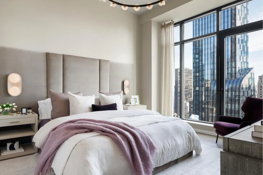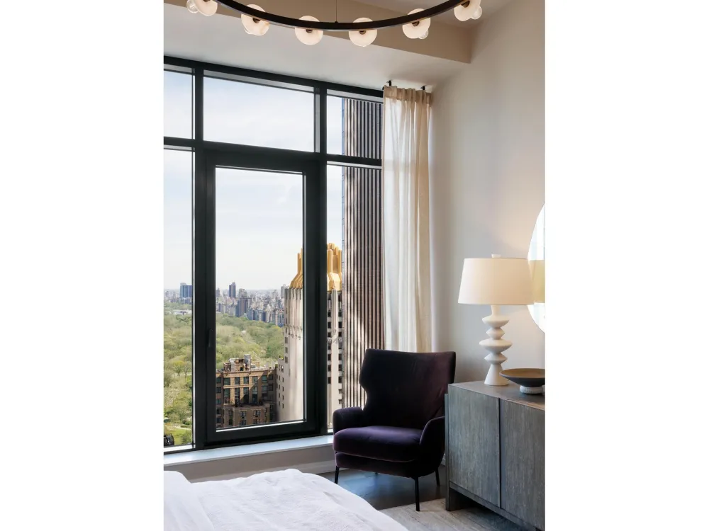 This spacious 1,215 square foot, one-bedroom, plus alcove, one-and-a-half-bathroom residence designed by Thomas Juul- Hansen, features an open-living concept with floor-to-ceiling 12-foot windows and northern exposures displaying iconic Central Park and Manhattan skyline views.