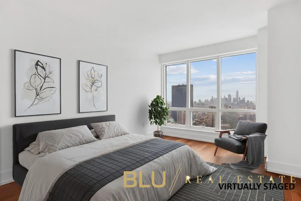 HIGH FLOOR IN THE PRESTIGIOUS F LINE WITH AMAZING VIEWS! The only South-facing 'F' line 1-bedroom available. Floor-to-ceiling windows, flooded with natural light throughout the day. Enjoy sweeping, unobstructed views of the New York City skyline, the Hudson River, Hudson Yards, One World Trade Center, the Statue of Liberty, and Downtown Brooklyn - a stunning visual backdrop at all hours of the day.