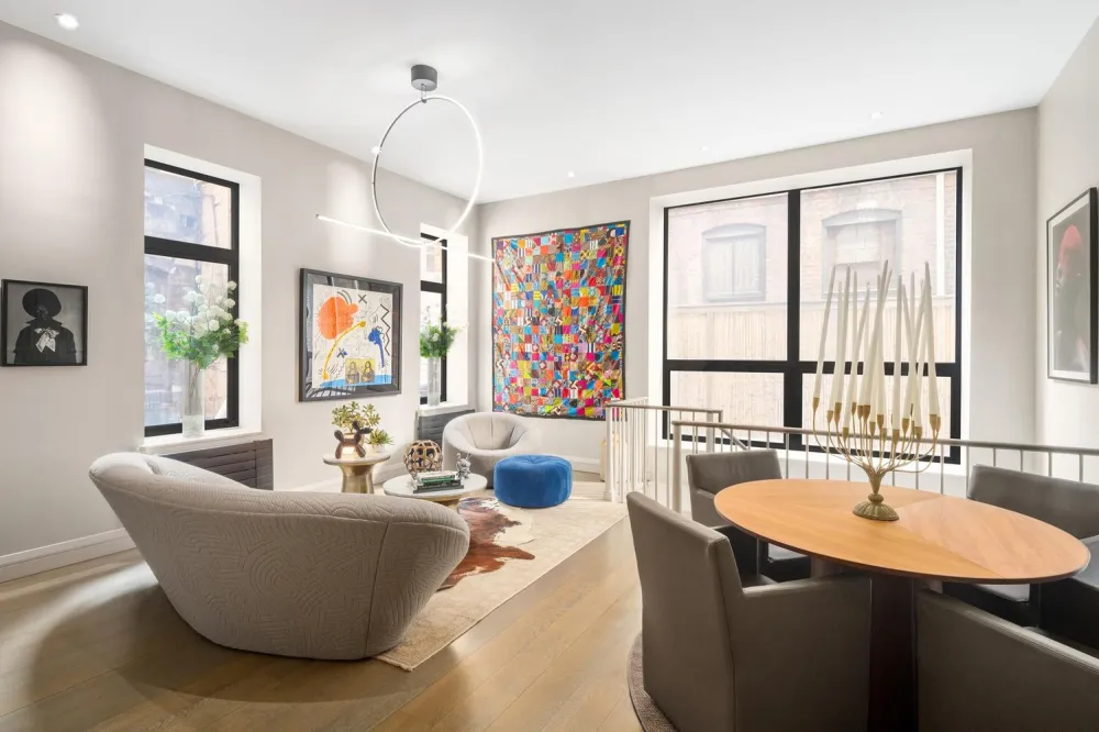 An uncommon level of sophistication will be experienced in this Chelsea Duplex Loft at the Carriage House, a boutique condominium, with an INDOOR PRIVATE PARKING SPACE INCLUDED! This townhouse-style loft home features 11.5" high ceilings, 7" wide plank solid oak floors, oversized windows, central air conditioning controlled by Nest, two full bathrooms, and offers high-end finishes throughout. The main floor has a large open living/dining room, oversized California closet and coat closet, & Chef's kitchen complete with custom wood cabinetry, top of the line stainless appliances: Wolf gas cooktop and convection oven, Subzero refrigerator, and Bosch dishwasher. Also on the main level is a spa-like bathroom featuring Carrara and Absolute White marble accents, Zuma soaking tub, radiant heating and a separate enclosed shower with rain fixture. On the lower level, the tranquil bedroom suite with additional sitting area has a walk-in California closet plus a large additional closet, a tastefully renovated full bathroom featuring custom Carrara and Absolute White marble shower, and a Bosch washer and dryer closet located just outside the bath. And finally, a small private patio provides a little outdoor space for you to take in some fresh air or add a bit of greenery to your decor. The Carriage House has a common landscaped roof deck complete with furniture and grill, as well as part-time doorman/superintendent, video intercom, private parking garage and storage (each unit includes one bin). Prime Chelsea location convenient to 1, M, F, E and C trains, 23rd Street bus and Whole Foods, Fairway Market, Trader Joe's and more!