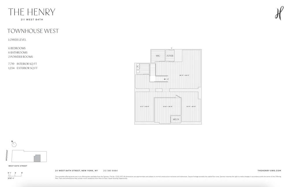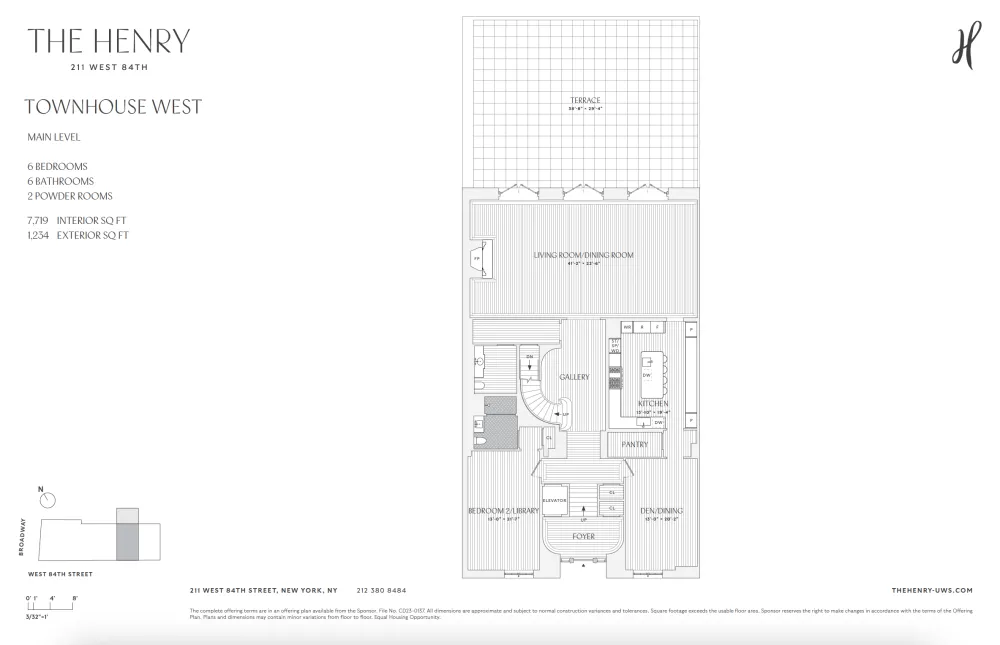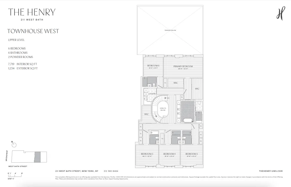 CLOSINGS BEGIN THIS FALL. Townhouse West is the rarest of finds. A 42-foot-wide townhouse with a garden, located in a full service, highly amenitized, condominium. TH West represents the best things about townhouse living with none of the downsides. It has width, space, security, outdoor space and ceiling heights ranging from 11 feet to 18 feet. The first floor of the Townhouse consists of a 42-foot-wide living room facing a stunning garden, and eat-in kitchen, complete with enormous pantry adjacent to a den or formal dining, a bedroom or library with its own full bath and a discrete and charming powder room. Upstairs are five bedrooms, each with an ensuite bath and generous closet space. The primary bedroom is 24 feet wide and overlooks the garden. It has two large closets and a beautiful five fixture primary bath with a floating tub. On the level below the living room is a great big space for each owner to design and use as they like.