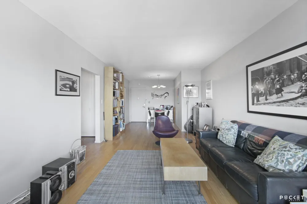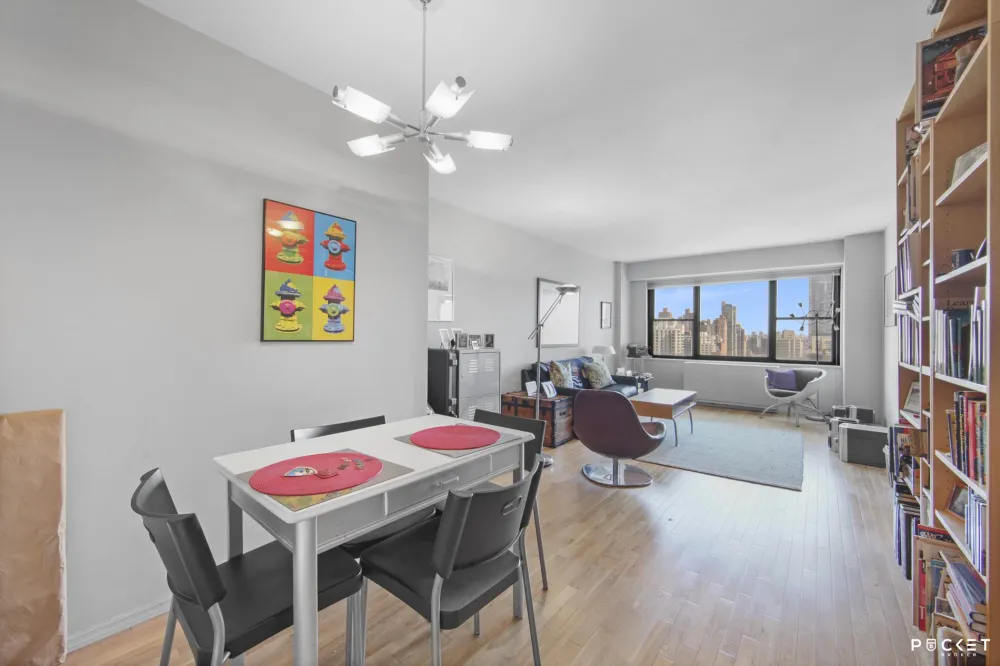 The apartment has an excellent living space with a dedicated dining area. The apartment has open city views and gets quality light.