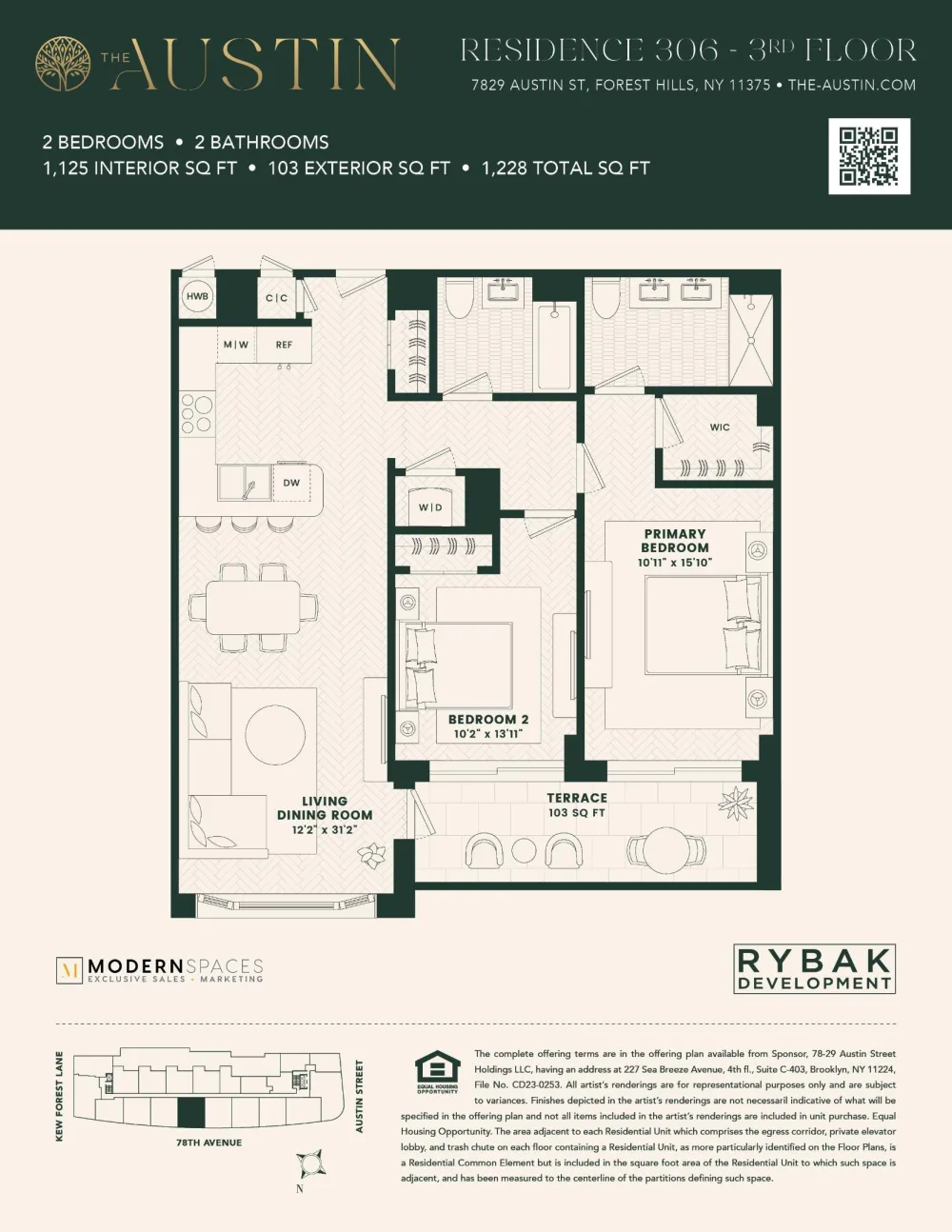 Welcome to Residence 306 at The Austin, a spacious two-bedroom, two-bath condominium offering comfort, style, and a prime Forest Hills location. This well-proportioned home features a charming bay window overlooking tree-lined 78th Avenue, flooding the living and dining areas with natural light. The thoughtfully designed layout includes a generous primary suite with an en-suite bath with heated floor, a well-sized second bedroom, and ample closet space throughout. The kitchen offers functionality and flow, perfect for both everyday living and entertaining.