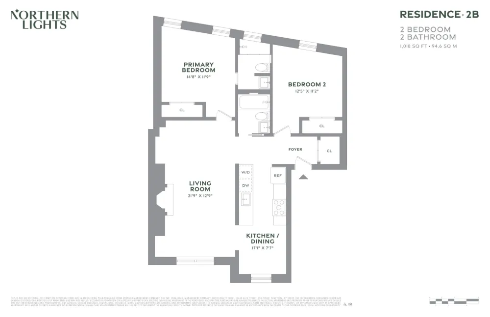 Unit 2B is a 1,018 square foot 2 bedroom with 1 bathroom, spacious, modern living environment where time lingers and memories are made.