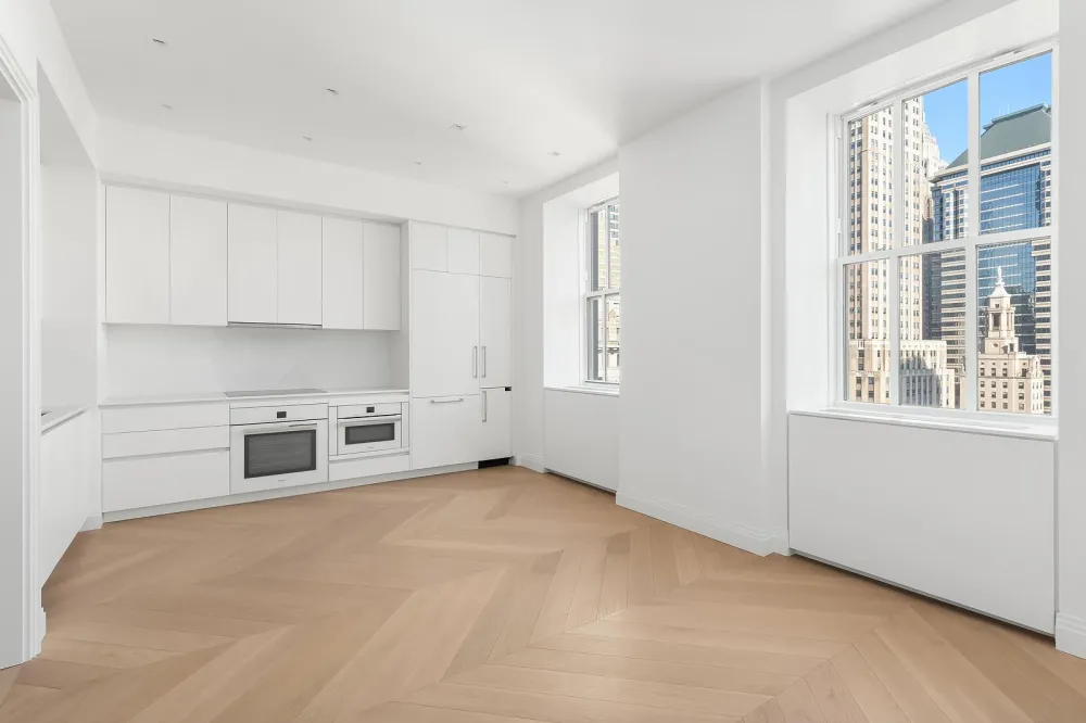 Move In Ready! Residence 3606 is a 906 SF, spacious one bedroom, one and a half bathroom layout within One Wall Street. Located in the East side of the building, with direct view of the New York Stock Exchange trading floor, this home offers ample closet space. Custom kitchens and baths pair seamless technology with classic elegance. The Kitchen features Oceanwood marble slab countertops, which rest on custom Aran Cucine cabinetry, accented by white glass panels and satin nickel finishes and is the perfect blend of beauty and function.