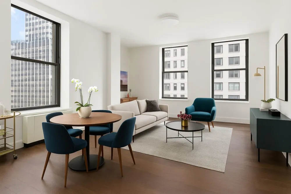 This coveted F line apartment is an extra large one bedroom spanning over 955 square feet with 10 foot ceilings and sleek hard wood floors.